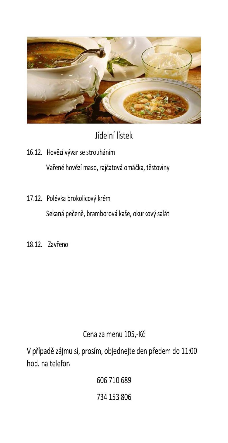 Menu na 16. a 17. prosince 2025 / 18. prosince 2025 ZAVŘENO