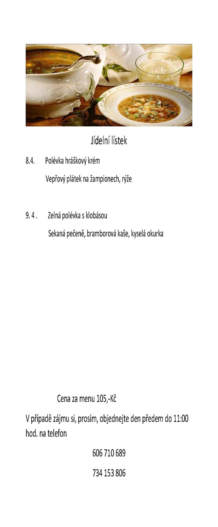 Objednávky vyřizujte na tel.: 606 710 689 nebo 734 153 806, paní Jana Vosiková.