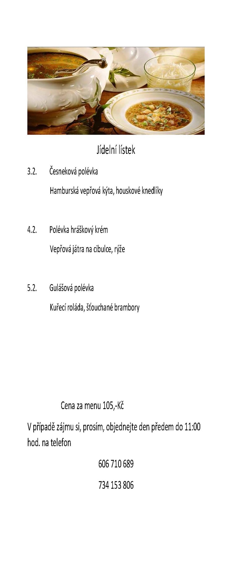 Menu na 3. - 5. února 2026